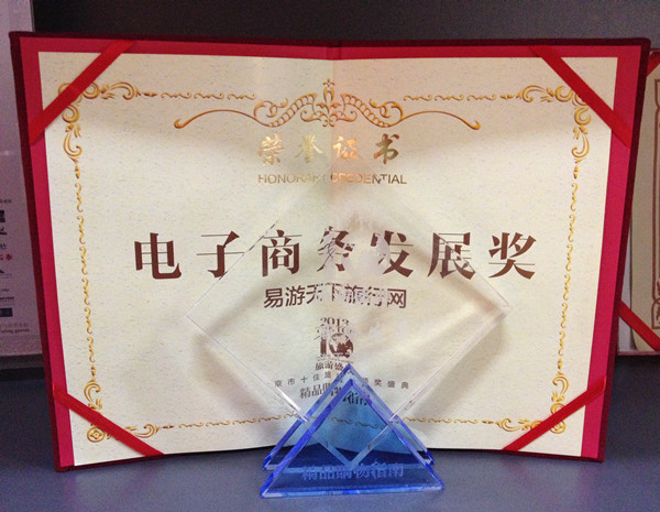 易游天下国际旅行社(北京)有限公司(简称:易游天下)12月19日电 易游天下受邀参与由《精品购物指南》主办的岁末颁奖盛宴,与北京旅业精英齐聚一堂,聆听消费时尚研究院发布的最新行业报告,共同解读盘点2013业界热点。席间,易游天下喜获电子商务发展奖,这是公众对品牌的认可,亦是对公司未来技术创新、服务创优的激励与鞭策。