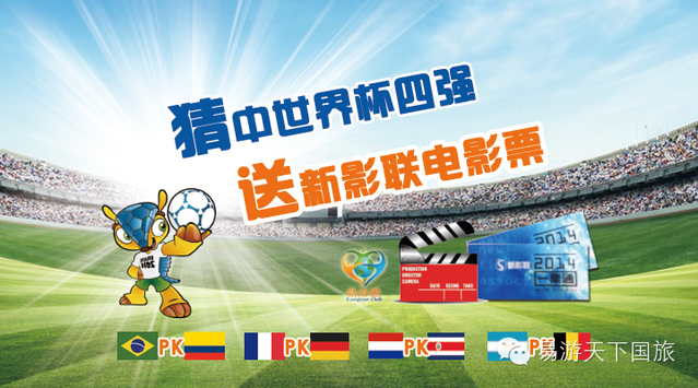 观世界杯,猜最终赢家,送您免费电影通票哈~~为您的偶像呐喊助威,选好看的电影轻松过周末!最爽、最赞、最快乐的事,快来积极参与哟~~