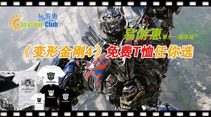 旅行,是脚在行走,心在感悟;观影,是眼在欣赏,心在聆听;远离喧嚣,放飞心灵,跟着小编一起玩转《变形金刚4》取景地。参与活动,关注我们并与小易互动,将有机会免费赢取《变形金刚4》纯棉T恤一件,六种款式,任你挑选哈~~