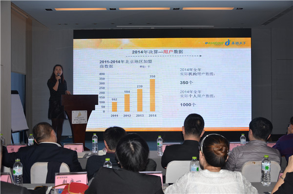 ▲易游天下财务部总监 梁巍 向与会的董事、股东及全体员工汇报了2014年公司经营数据及2015年经营目标。