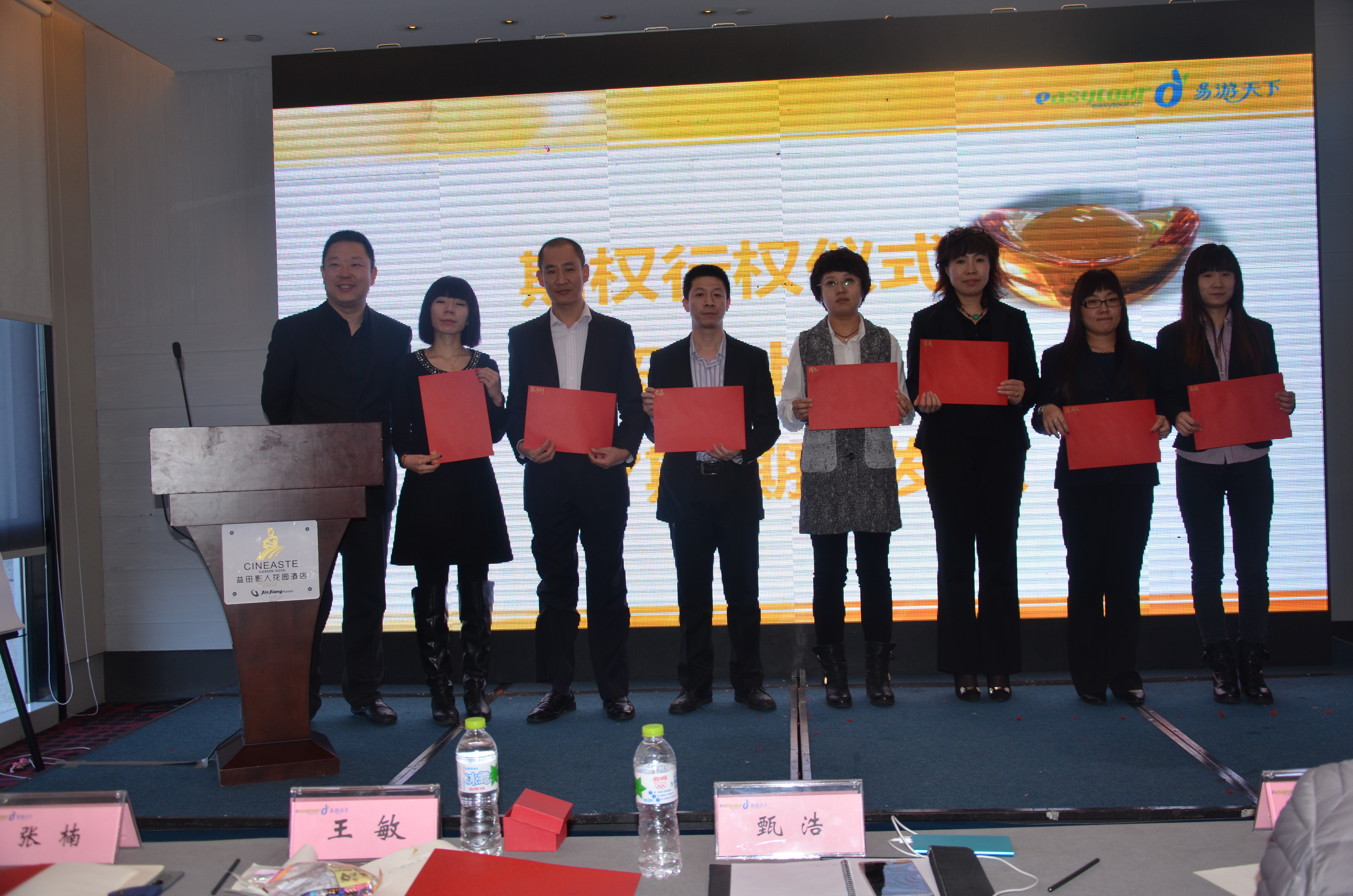 1月30日—31日,易游天下国际旅行社(北京)有限公司(以下简称“易游天下”)2015年年会于北京益田影人酒店隆重举行。易游天下国旅全体员工、美景假期国旅全体员工、四川省天下易游国旅高管及易游天下国旅董事共计120余人,参加了易游史上最别开生面的“大咖汇”年会。会上,公司董事长及各分公司&分部门领导公布了2015年全年战略布局及执行规划。同时,对易游的发展做出突出贡献的员工给予了期权奖励。