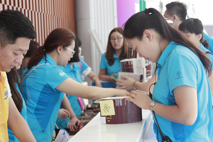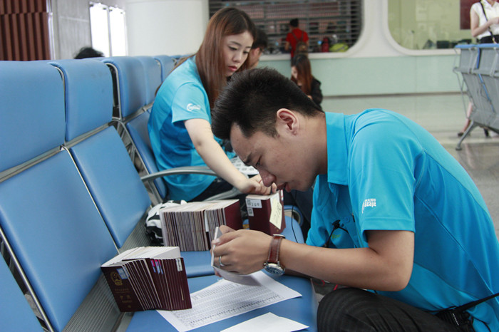 出发当日,为了让每一位客人放心出行,我们的团队再三确认客人的护照、行李等出行手续。淹没在人群中的工作人员,努力举着牌子,为客人指引。