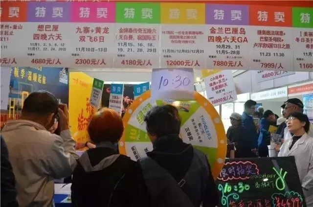 据悉本届旅商会由北京市旅游发展委员会主办,展出面积为45000㎡,设有北京主题馆、省市主题馆、国际旅游商品主题馆、旅游装备线下体验展、自驾游主题馆、茶文化旅游主题馆等。参展商来自美国、韩国等56个国家和地区、全国16个省市以及我市14个区县的千余家优质企业参展。其中,探路者旅行-易游天下展位,精彩不断的抽奖活动,特价的爆款产品,以及特卖的新款装备颇受消费者关注,引得游客排成一条长龙。