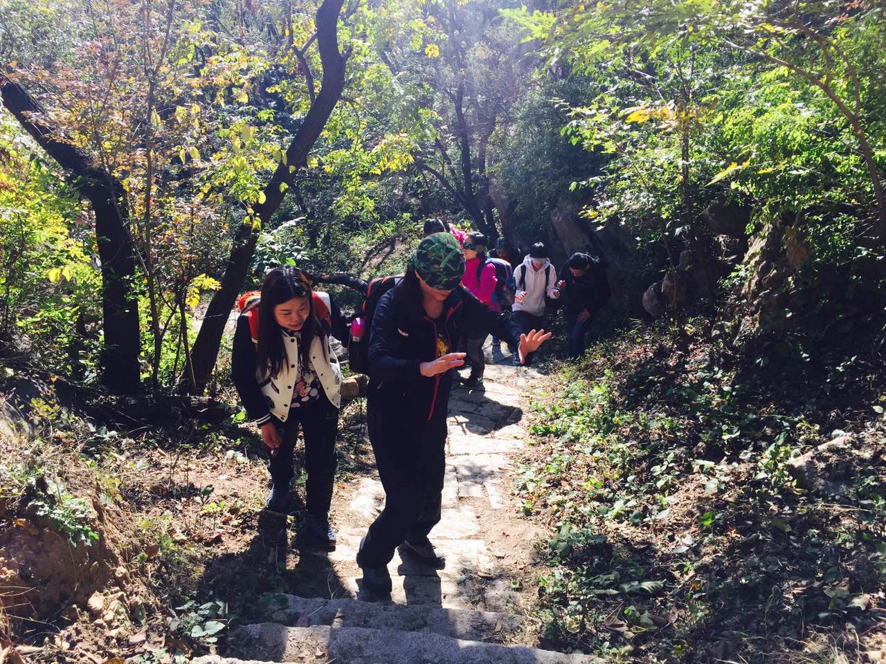 活动伊始,领队广宇老师对大家进行了专业的户外指导以及登山注意事项培训。比如攀登时,侧着身体上山,以防止膝盖受伤;比如攀登至途中,不要随意脱掉衣服,以防止感冒等等。大家摩拳擦掌,跃跃欲试。途中,蒙眼指路游戏,更是让大家明白团队协同的重要意义,相信身边的伙伴,才能正确的前行,同理,在工作中相信你的队友,才能使合作效益最大化。