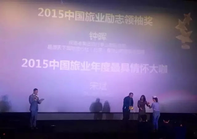 ▲钟晖荣获“2015中国旅业励志领袖奖”