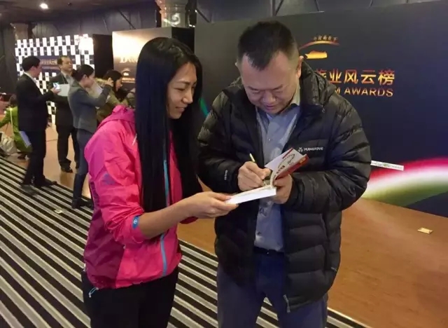 ▲旅聘网CEO曹戈赠书易游天下品牌战略部总监徐影