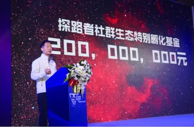 ▲探路者创始人、集团董事长兼CEO盛发强启动社群生态孵化基金