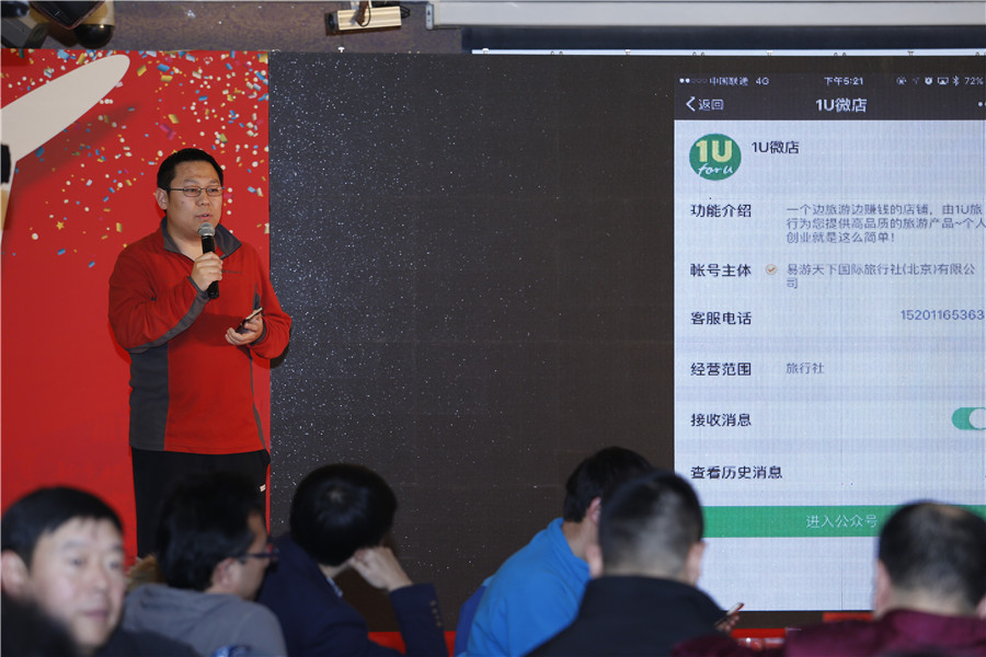 ▲易游天下系统研发部总监张立春宣布1U微店正式运营,并对微店操作进行讲解