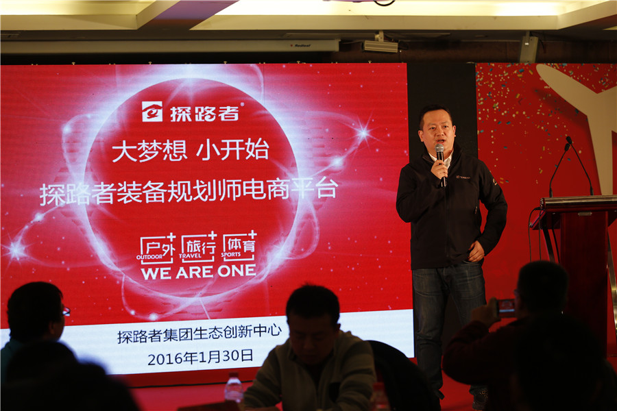 向与会伙伴们宣讲了探路者集团生态创新中心的装备规划师电商平台