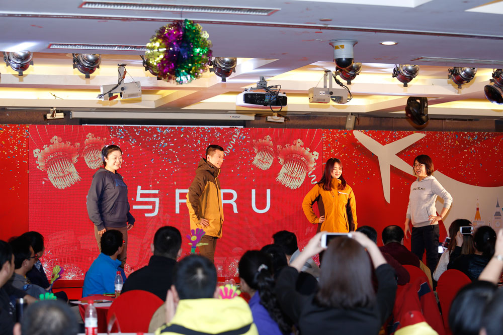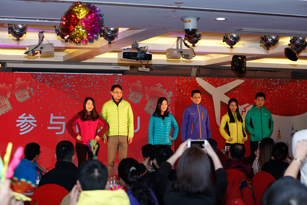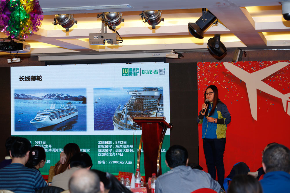 ▲体验式旅行产品总监丰敏霞宣讲2016年体验式旅行产品规划,如户外亲子、登山徒步、极地探险、人文摄影、骑行自驾等主题系列产品,并携团队亮相