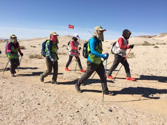 参赛选手们用行动和坚持诠释了“玄奘精神”,徒步穿越116公里的无人区,沿途经过塔尔寺、破城子、昆仑障、风车阵、广显驿等地标,亲历戈壁中雅丹、盐碱地、丘陵、砾石戈壁等地貌。探路者勇士们践行“勇敢的心”,步行在戈壁间,用自己的双脚去丈量土地,探索着身体的极限所在,去领悟“理想、行动、坚持”的真谛。不少队员们脚上已磨出水泡,也有队员承受着腿部拉伤的伤痛,一路坚持下来的他们却始终保持着乐观向上的心态,他们知道终点就在前方。